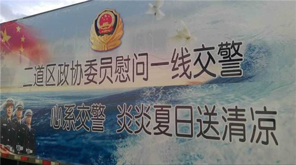 8月3日上午,長春新基管業(yè)有限公司董事長劉宇恒女士同二道區(qū)政協(xié)領(lǐng)導一同慰問了一線交警,為他們送去一份清涼,一份心意,使他們有更好的精神面貌去維護好城市交通的暢通和行車安全。傳遞社會正能量,唱響“關(guān)愛生命暢通二道”的主旋律。